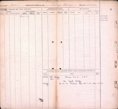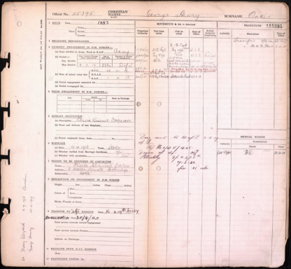 George Henry Oakes : Forces War Records, UK, WWI, Pension Ledgers and Index Cards, 1914-1923 (https://uk.forceswarrecords.com/publication/1019/uk-wwi-pension-ledgers-and-index-cards-1914-1923 : accessed 17 Jan 2026), database and images, https://uk.forceswarrecords.com/publication/1019/uk-wwi-pension-ledgers-and-index-cards-1914-1923