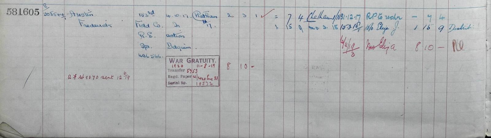 486566 Sapper Frederick Austin 153 Field Company Royal Engineers .