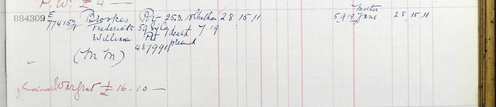 Frederick William Brookes was born at Cobridge, Staffordshire in 1898 being baptised on the 3rd August 1898 at Cobridge Christ Church. His parents were William born c1863 and mother Mary Jane née Dawson born c1870. They married on 5th December 1892.