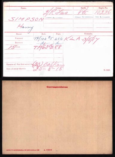 Private Harry Simpson | War Casualty Details 1653057 | CWGC