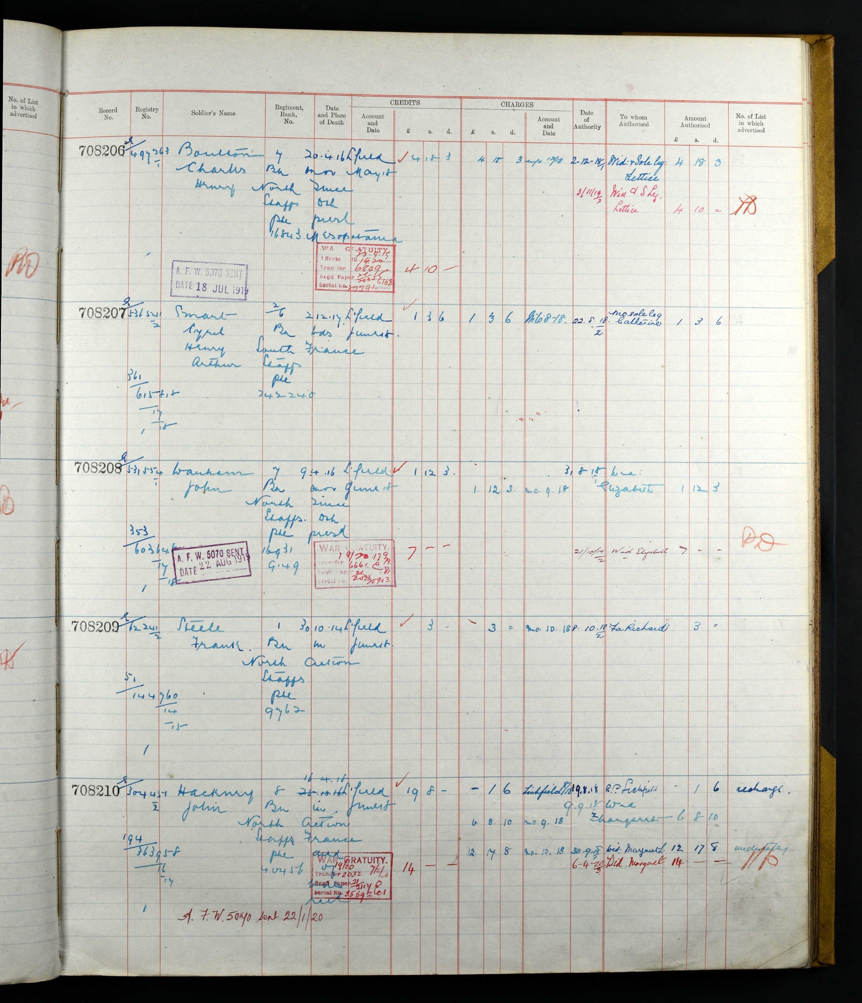 National Army Museum; Chelsea, London, England; Soldiers' Effects Records, 1901-60; NAM Accession Number: 1991-02-333; Record Number Ranges: 707501-709000; Reference: 423
