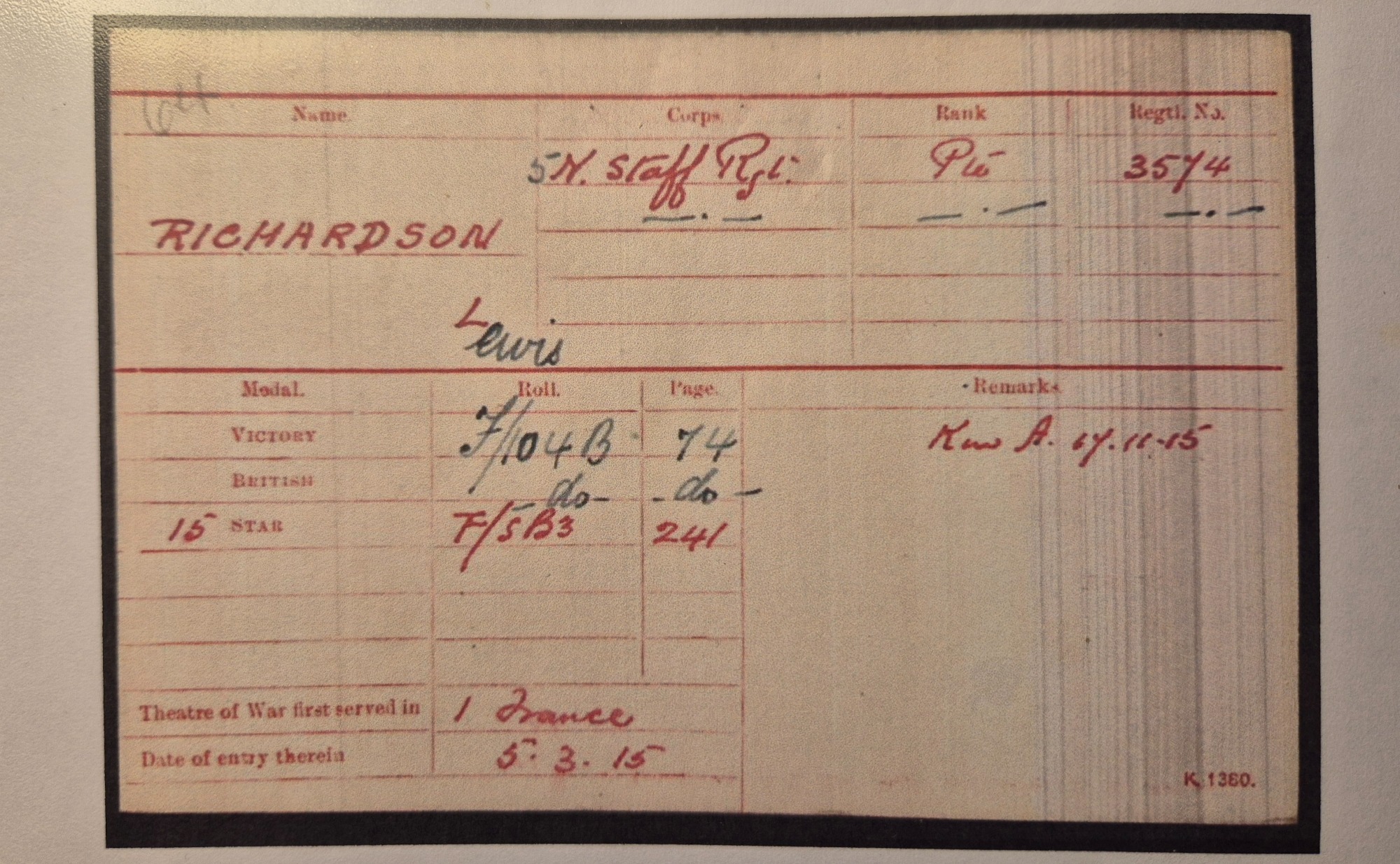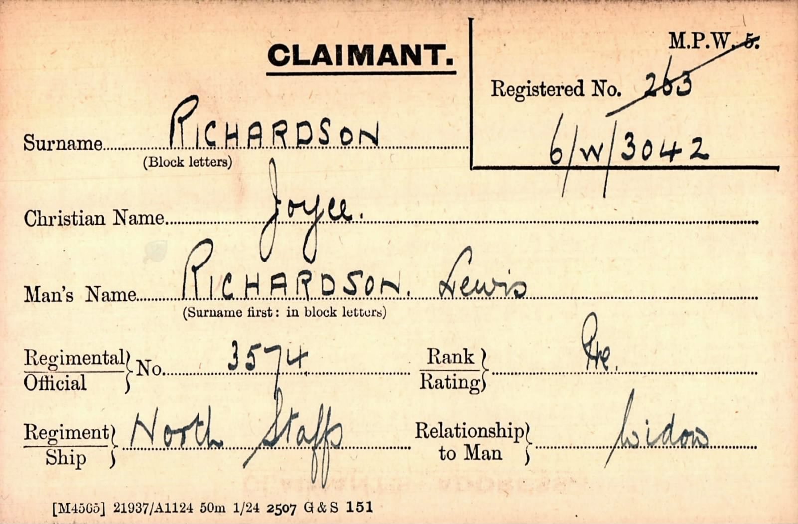 Pte. 3574 Lewis Richardson